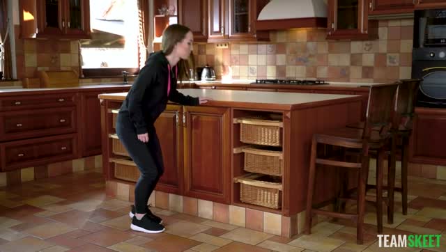 Upside Down: Hot-Blooded Brunette Babe Sucks Cock In Kitchen